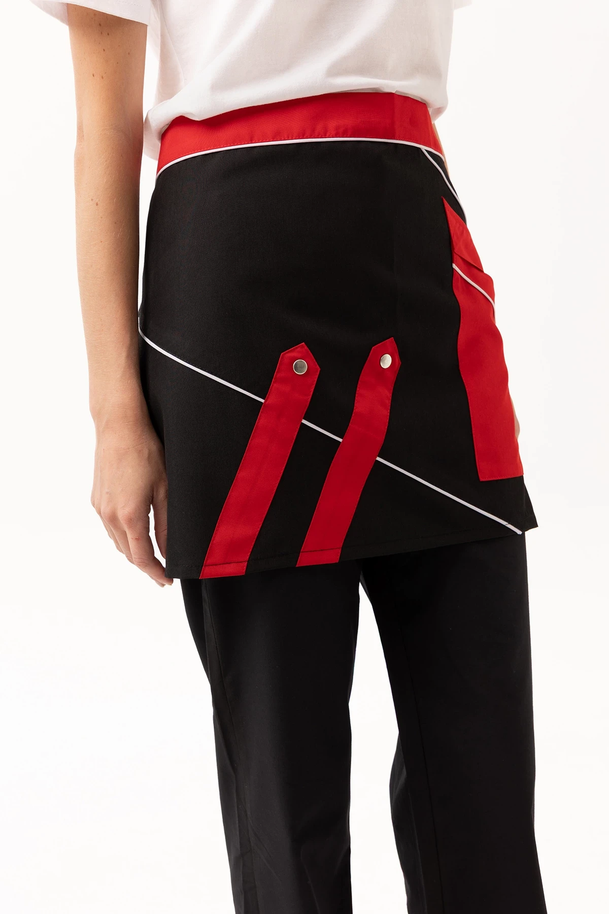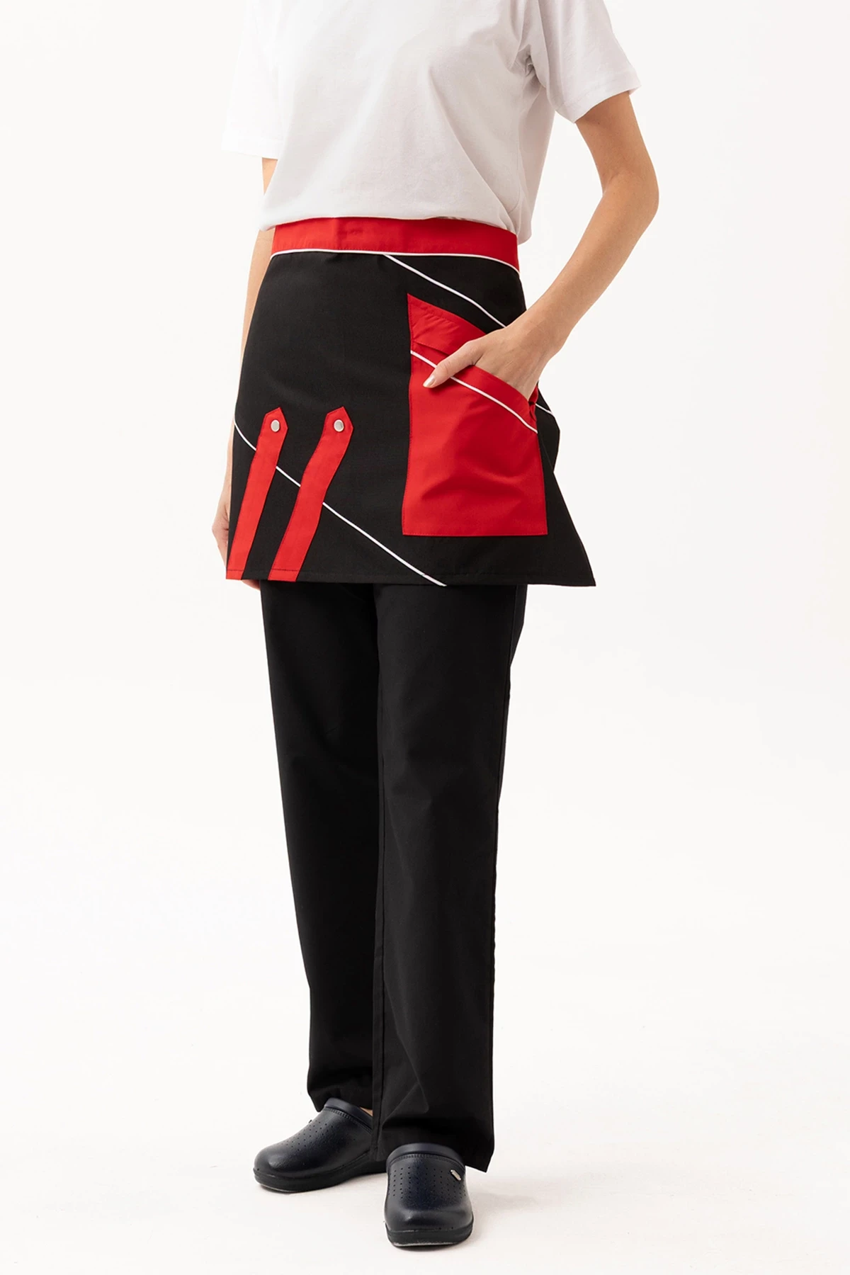 Laurus Servis Önlüğü - UME019-041.ALPAKA Laurus Servis Önlüğü, servis personelinin hem estetik hem de pratik ihtiyaçlarına yönelik olarak tasarlanmıştır. Siyah zemin üzerine kırmızı ve beyaz detaylarla zenginleştirilmiş bu model, markanıza modern ve dinamik bir görünüm kazandırır. Ürün Avantajları: