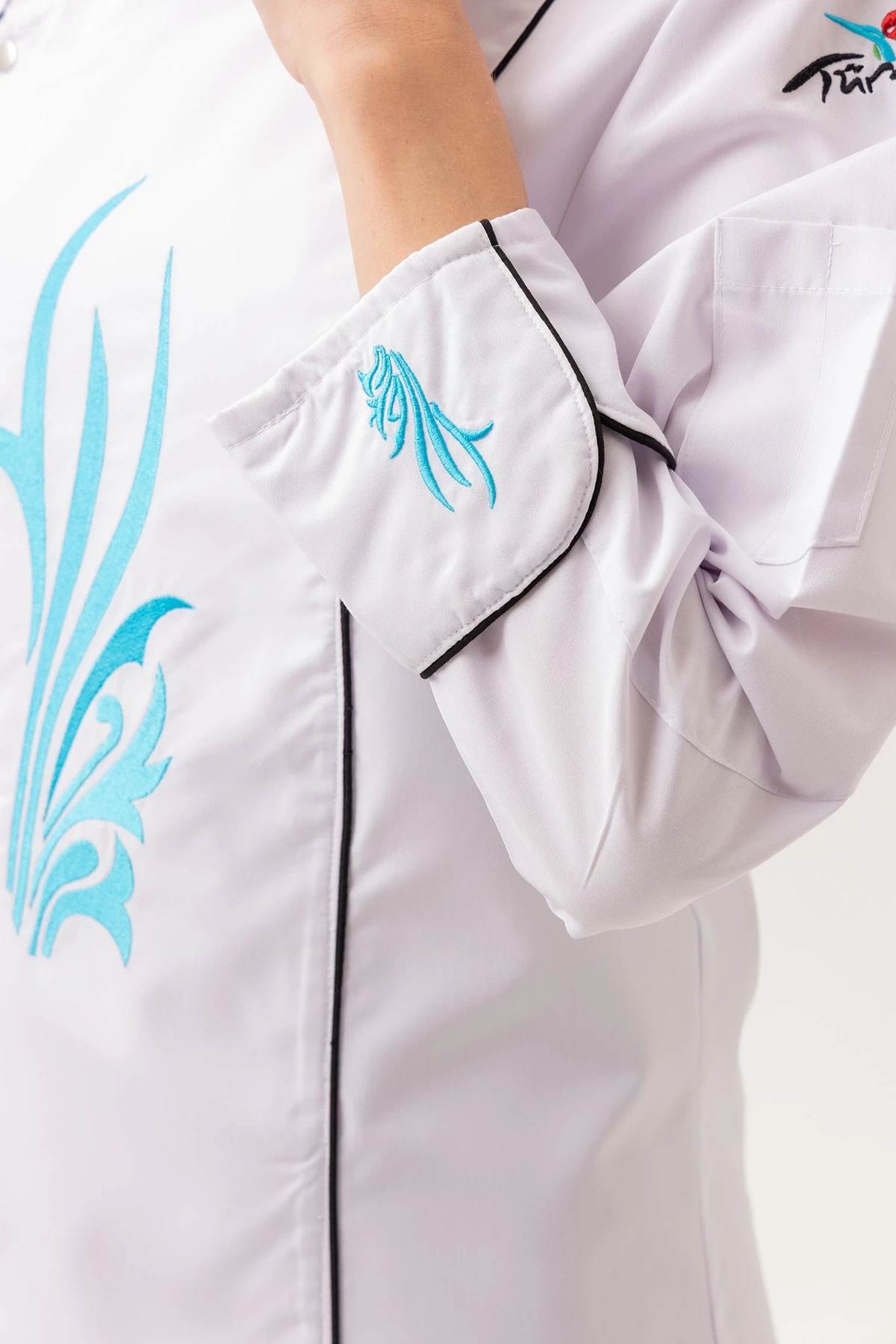 Libani Aşcı Ceketi - UKE015-403.020.ALPAKA185 Libani Aşçı Ceketi, modern çizgileri, zarif nakış detayı ve işlevsel tasarımıyla mutfak profesyonelleri için özenle hazırlanmıştır. Hem kadın hem erkek model seçenekleriyle takım bütünlüğünü korurken, mutfaktaki disiplinli ve estetik duruşunuzu yansıtır. Ürün Avantajları:
